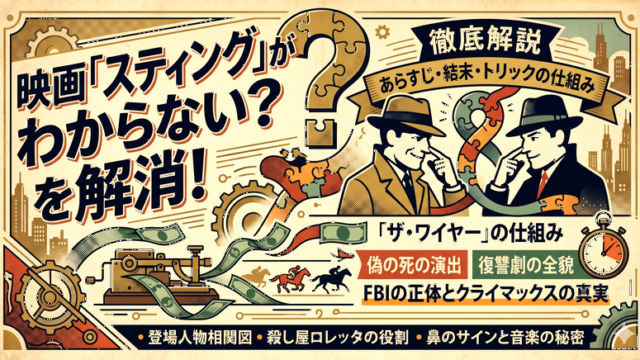 名作『スティング』を観たけれど、内容が複雑でスティングの映画がわからないと悩んでいませんか?この記事では、結末のネタバレやFBIの正体、競馬詐欺の仕組みを詳しく解説します。スティングの映画がわからない理由を解消し、伏線回収の快感を味わいましょう。これで物語の全貌が理解できます。