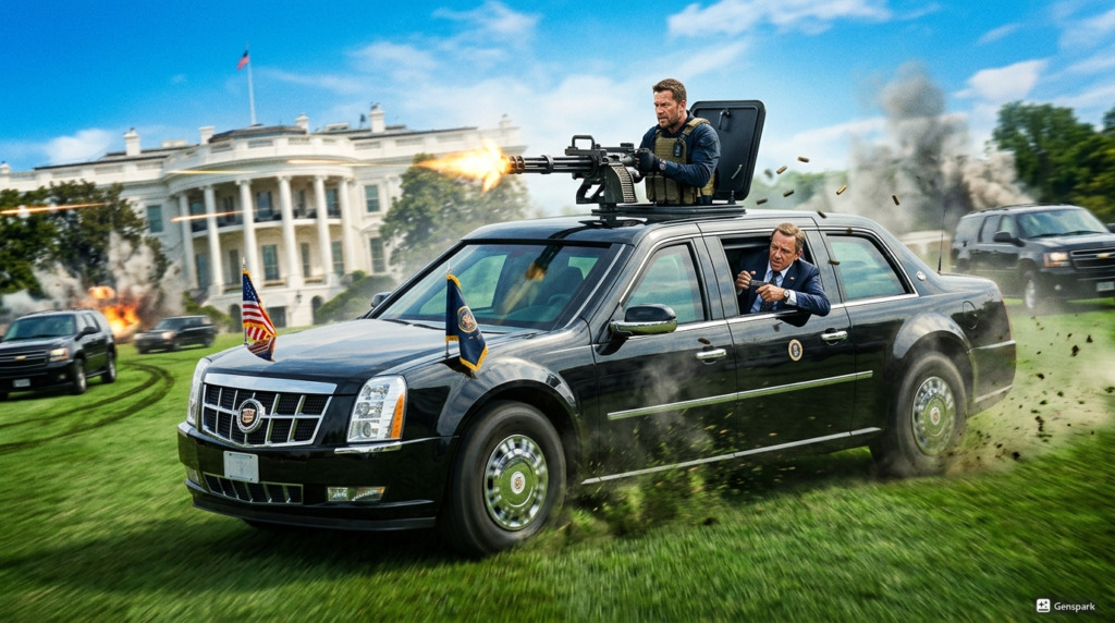 逆にポジティブな感想を持つ人たちは、その突き抜けたアクションを絶賛しています。ホワイトハウスの庭を大統領専用車(ビースト)で爆走し、ガトリング砲をぶっ放すシーンなどは、他の映画ではなかなかお目にかかれません。